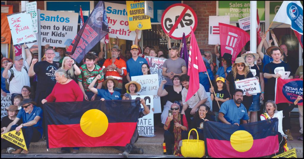 The union movement is supporting the Gomeroi people in their efforts to stop the Pilliga/Narrabri gas project, a project that will see Santos build 850 coal seam gas (CSG) wells on Gomeroi country in the Pilliga.